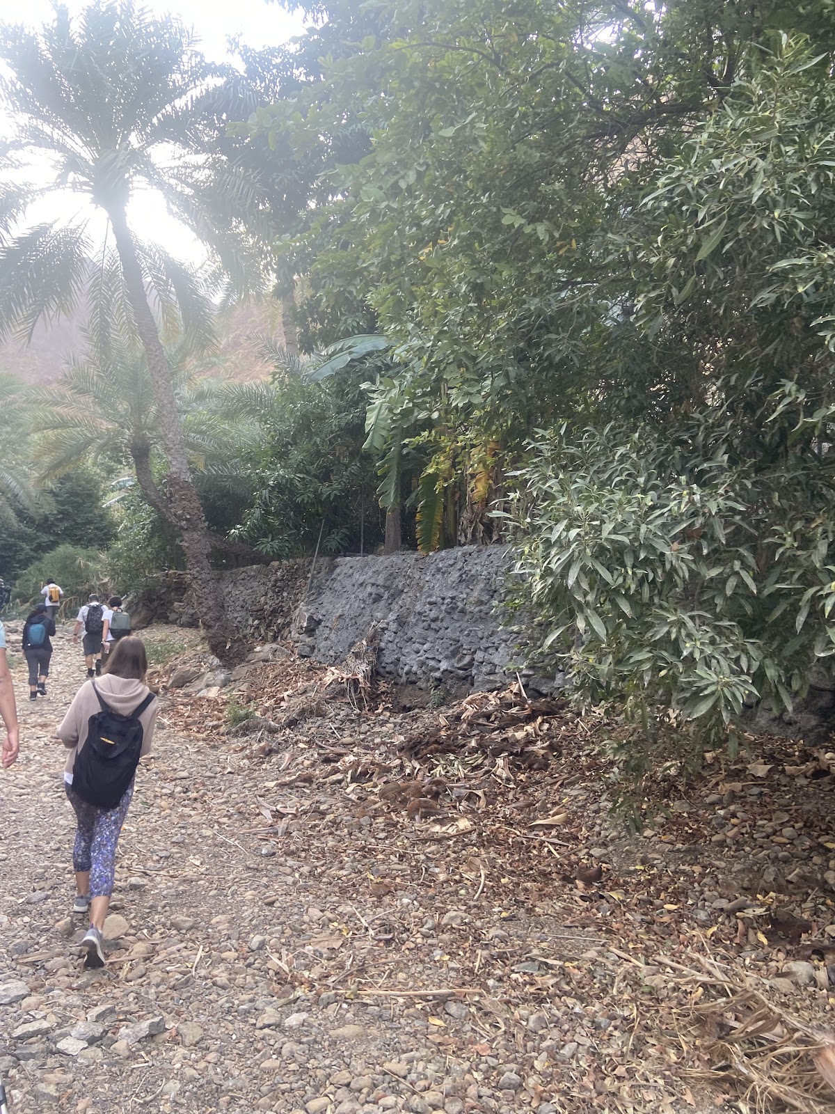 After the falaj, we hiked in a wadi, which is an Arabic word for a dry river bed. In other parts of the world, these types of formations are similar to what we call valleys, though they typically have much less green and a lot more rocks, boulders, and sand.